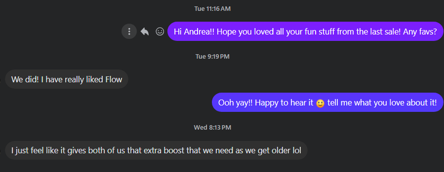 Some of our repeat customers have been “part of the family” for over a decade. We want to hear from you when FLOW is working great, you’re feeling the difference in many ways throughout the day…